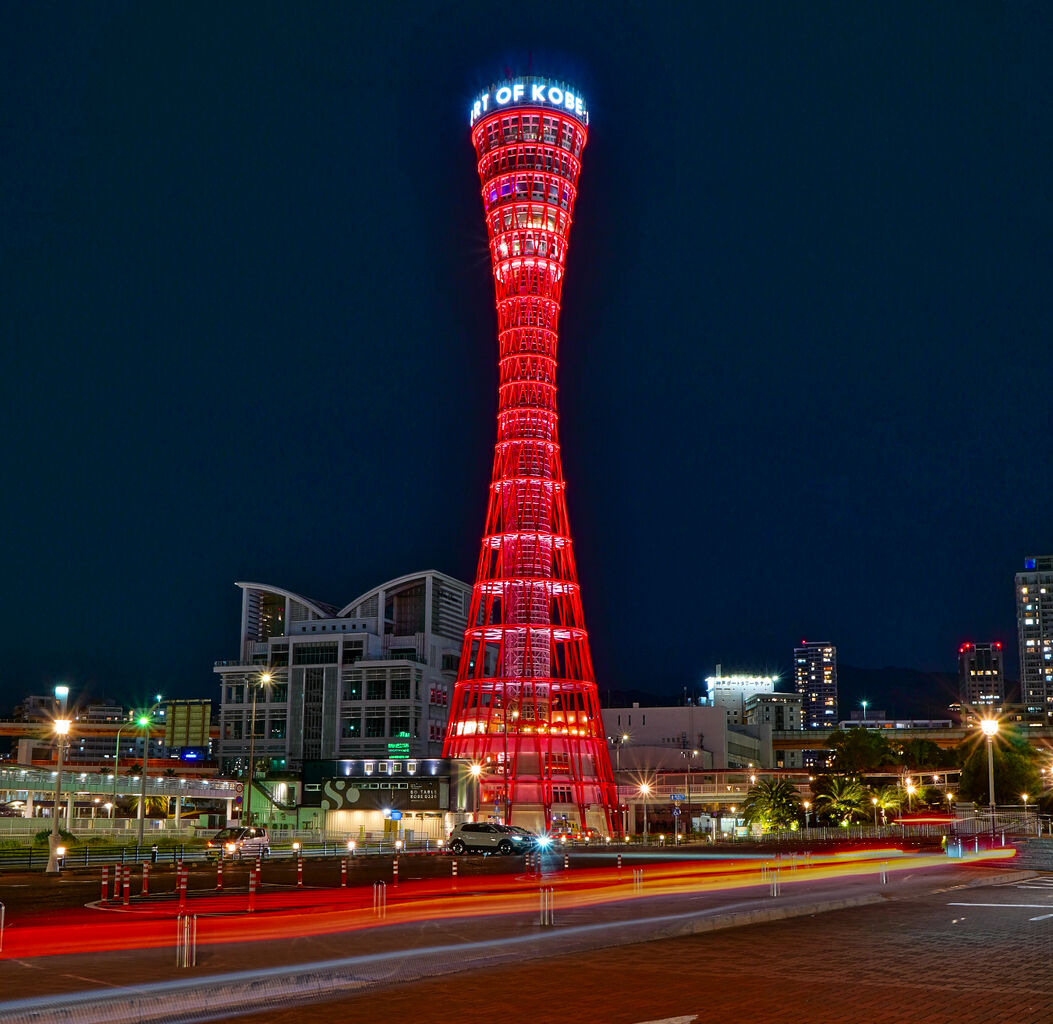 神戸ポートタワー方面も、望遠ズームでうまく捉えられました。直線距離で1.6kmほど離れていますが、ここも良い撮影スポットかと思います。