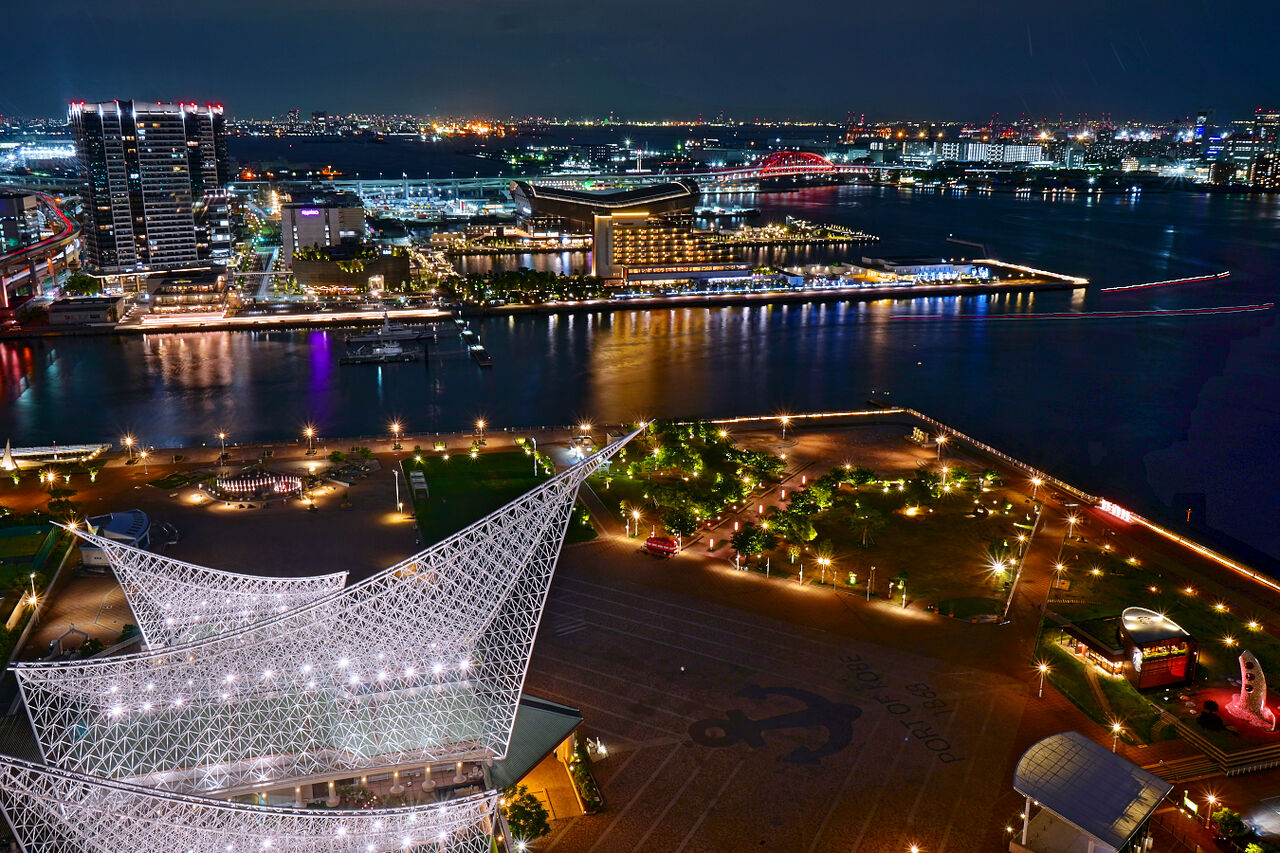 展望台からの眺望は素晴らしく、神戸の港が一望できました。その中でも、神戸海洋博物館が最も輝いていました。照明の色が刻々と変わるのもいいですね。ホテルオークラ神戸も存在感がありました。