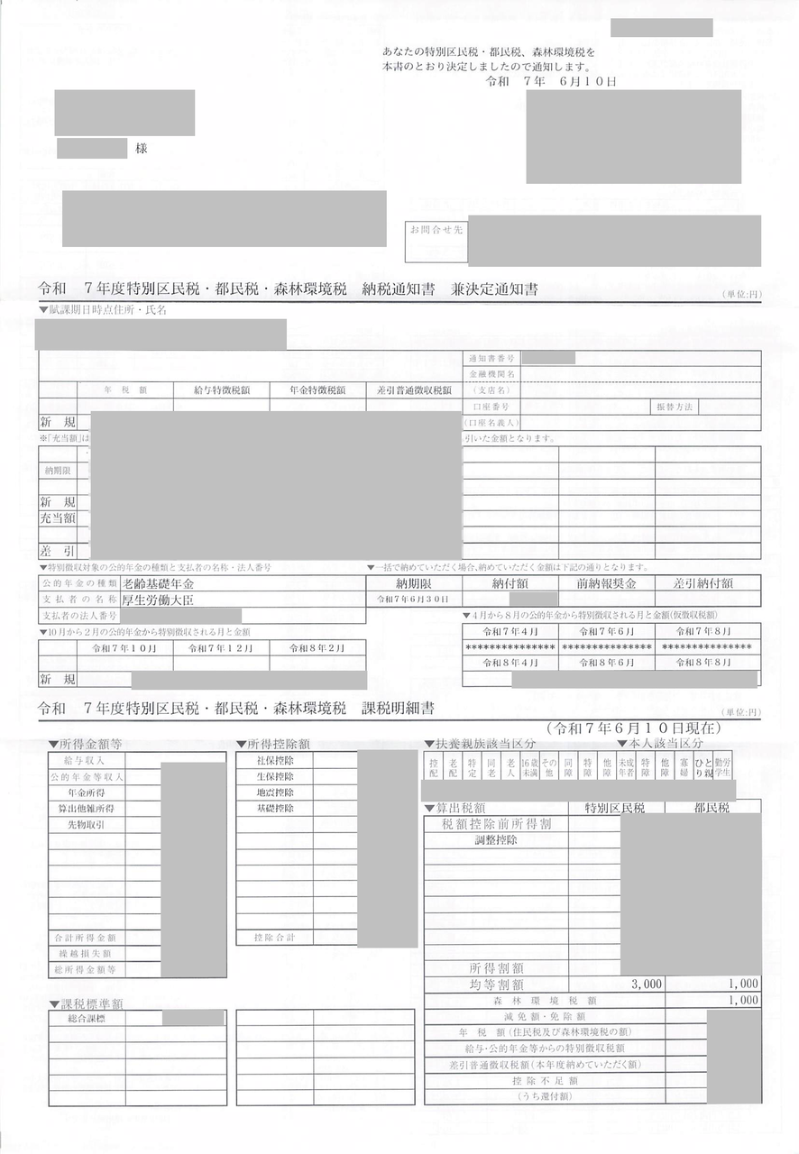 今年度の住民税通知書
