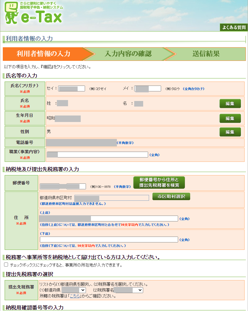 例年、国税庁の確定申告書作成コーナーを利用し印刷して税務署へ持参していますが、今年は税務署で行列に並ぶのを避けたく、初めてe-Taxを利用してみました。