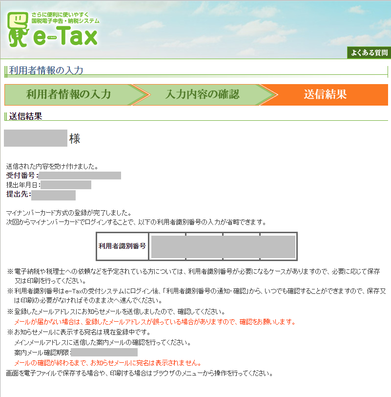完了してみると、申請書の印刷や税務署へ行く手間もなく、今回は添付書類が無しで済み、大きなメリットがあることが体験できました。
